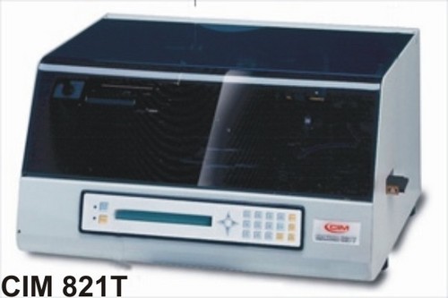 These Plastic Card Embossing / Indenting Machines are manufactured by CIM Italy. The machine embosses or indents on plastic cards such as credit and debit cards. Model 821 T is semi automatic with feeding of cards one by one by hand. The machine automatically embosses the card and does tipping. The card is then transferred back to the feeding position. Sample Availability : Yes Supplier Product Code : AGPL-03 Competitive Advantages of the product CIM machines are the most selling machine in the world. CIM is also the most popular brand in India and USA for card embossing machines.